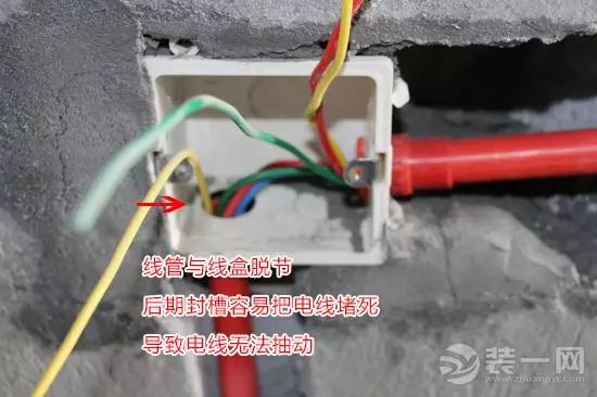 按照规范,一些老管不能使用的需要重新开槽布线,但是有些工人喜欢偷懒,借道老线管。不是所有的老线管都是可以走线的,下图就是一处错误案例,一旦封槽后,电线是不能抽拉的。(详见下图)